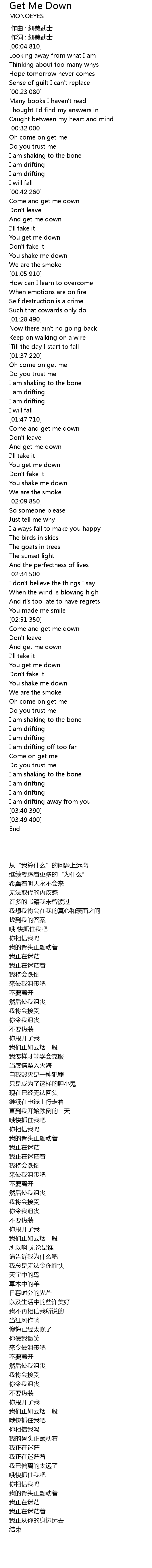 | [00:38.400] | I am drifting |