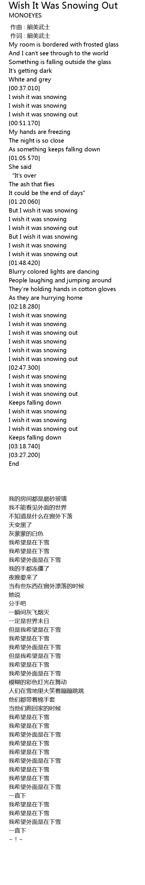 | [03:02.270] | I wish it was snowing |