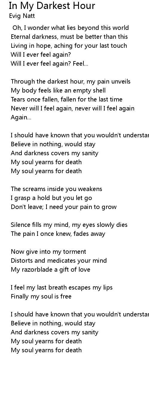 Through the darkest hour, my pain unveils |