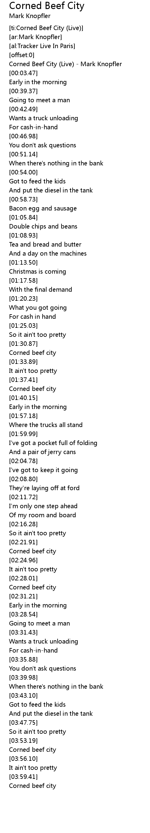 [ti:Corned Beef City (Live)] |