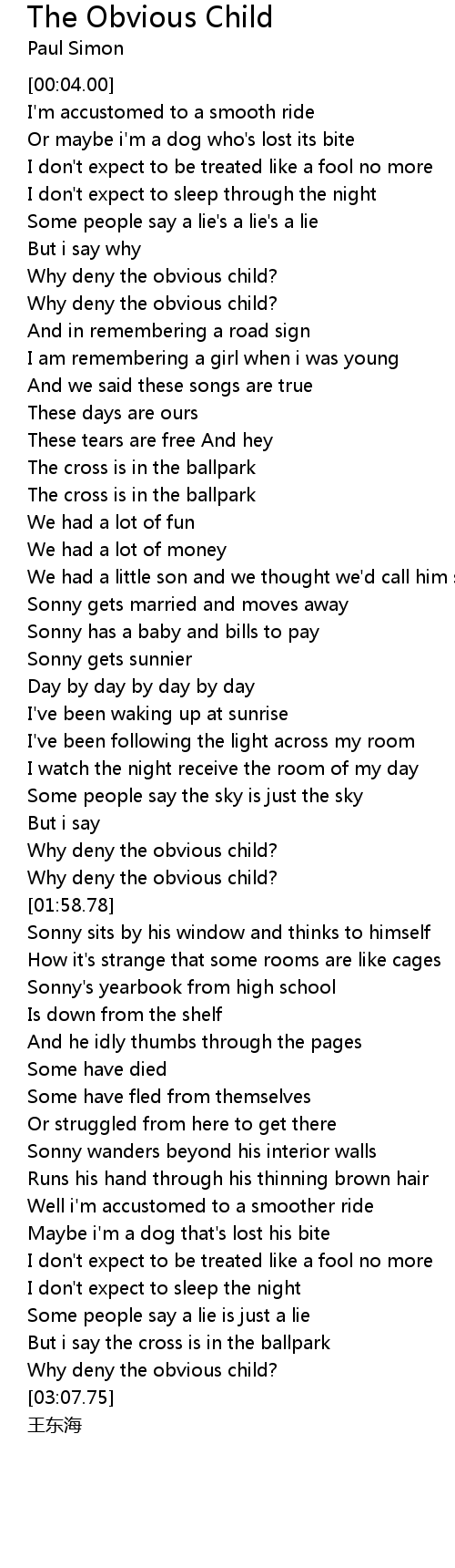 | [00:43.00] | Why deny the obvious child? |