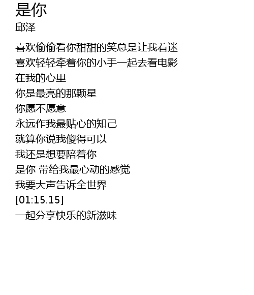 | [00:05.29] | 喜欢偷偷看你甜甜的笑总是让我着迷 |