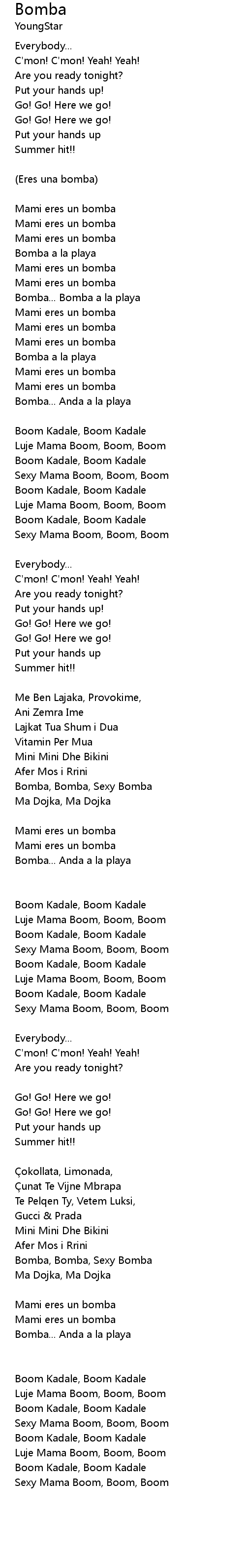 | [02:43.54] | Bomba, Bomba, Sexy Bomba |