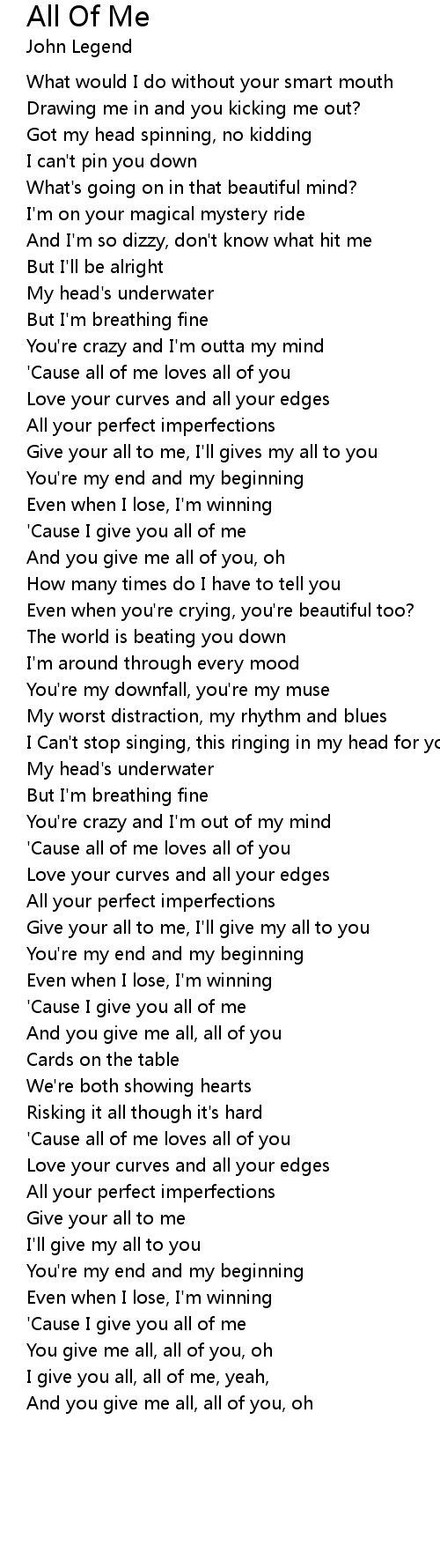 'Cause all of me loves all of you |