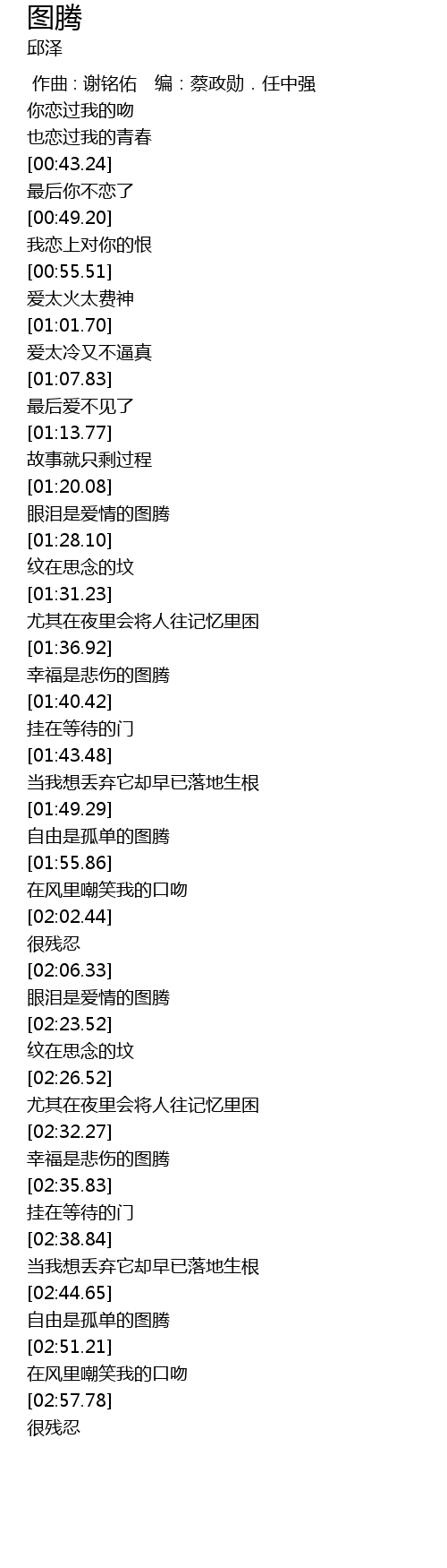 | [02:20.64] | 眼泪是爱情的图腾 |