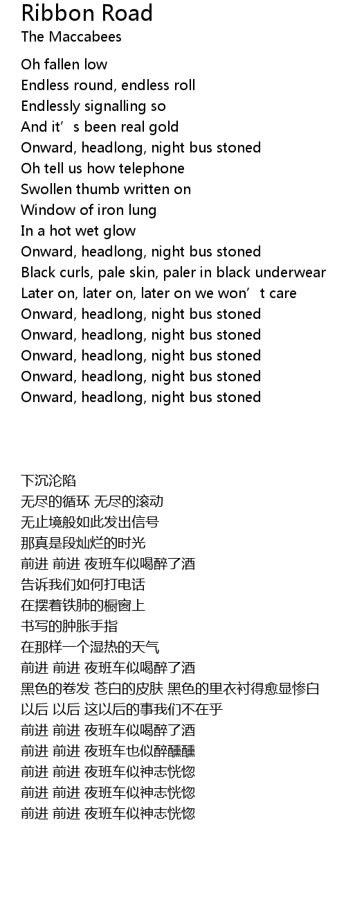 | [02:58:000] | Onward, headlong, night bus stoned |