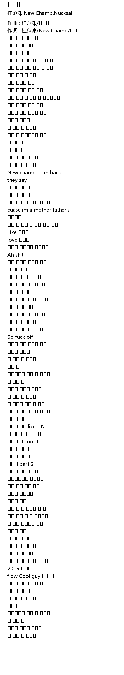 | 作词 : 桂范洙/New Champ/넉살 | |