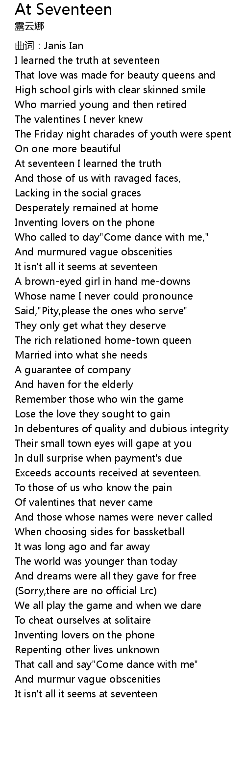 | Song | At Seventeen |