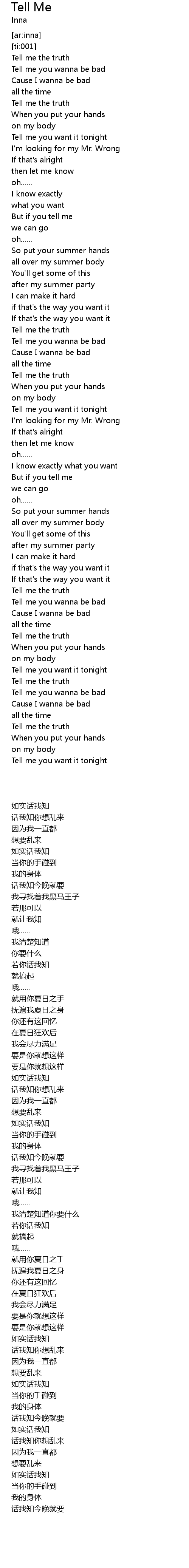 | [00:13.49] | Tell me you want it tonight |