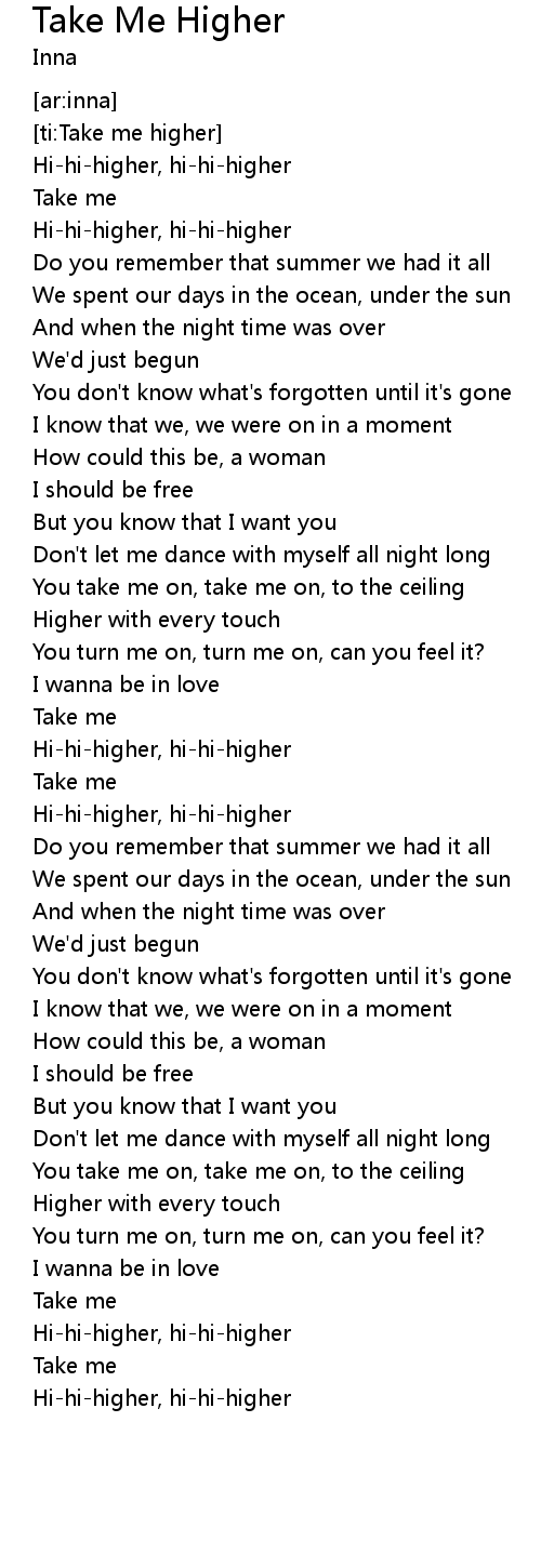 Take Me Higher Lyrics