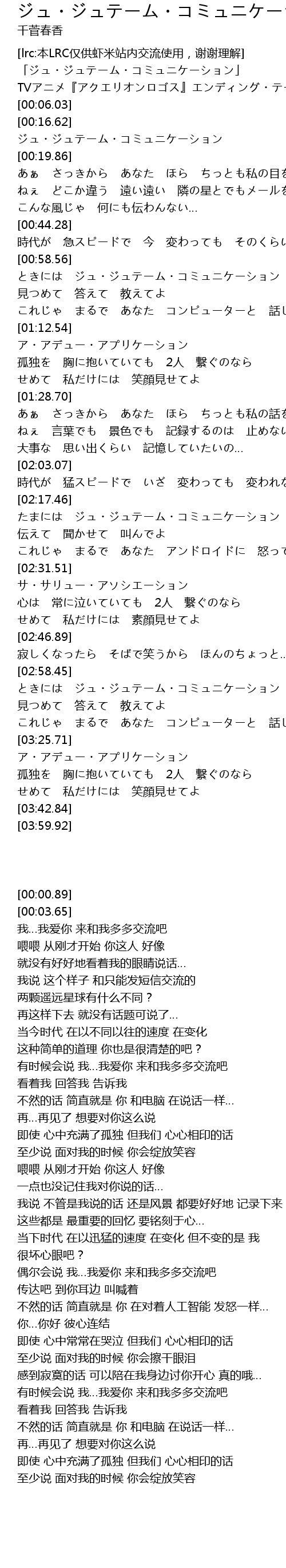 | [00:00.89] | 「ジュ・ジュテーム・コミュニケーション」 |