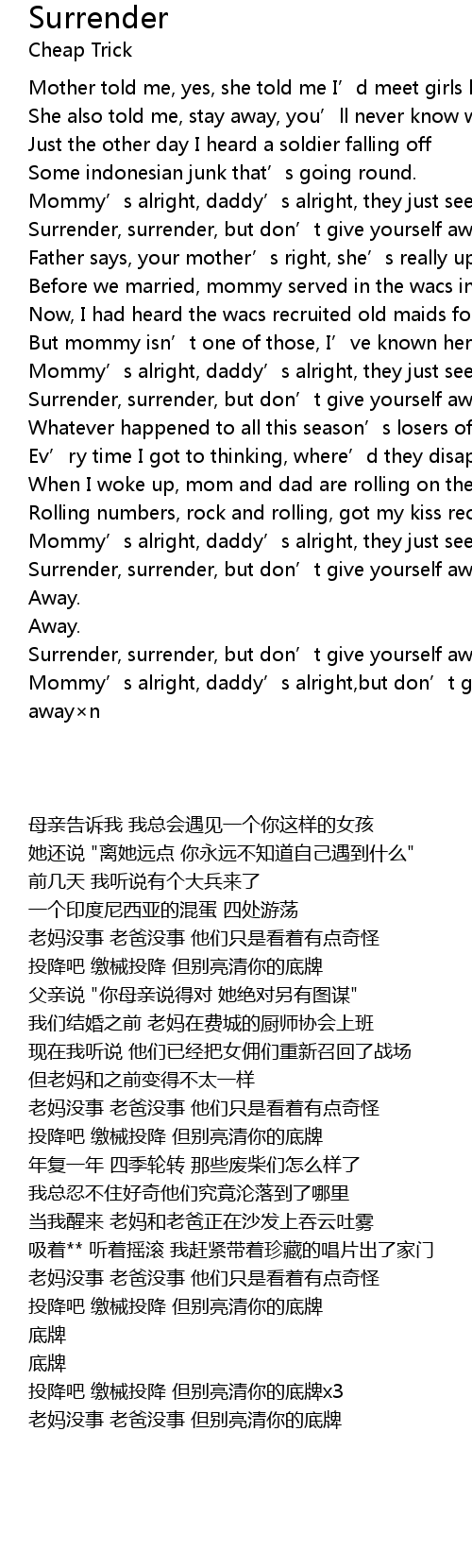 | [03:27.390] | Surrender, surrender, but don’t give yourself away, ay, ay, ay.×3 |