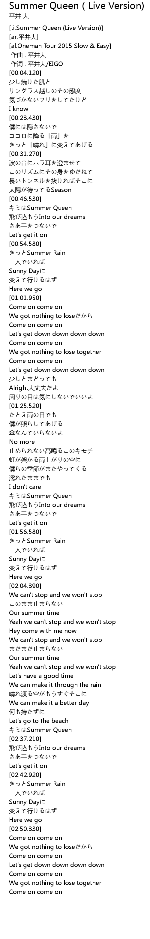 | [00:01.00] | 作词 : 平井大/EIGO |