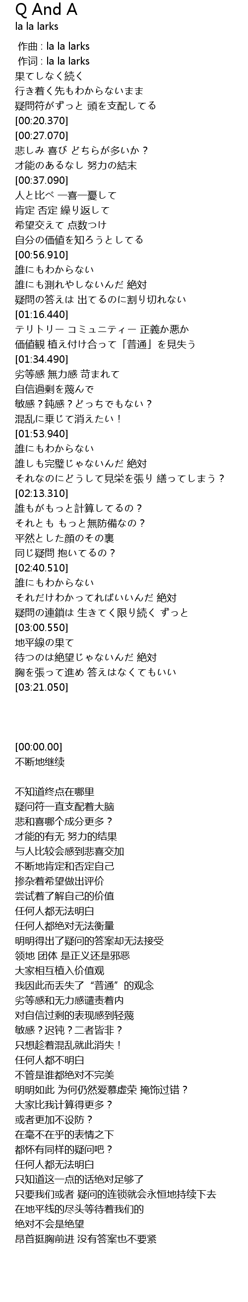 | [02:50.590] | 疑問の連鎖は 生きてく限り続く ずっと |