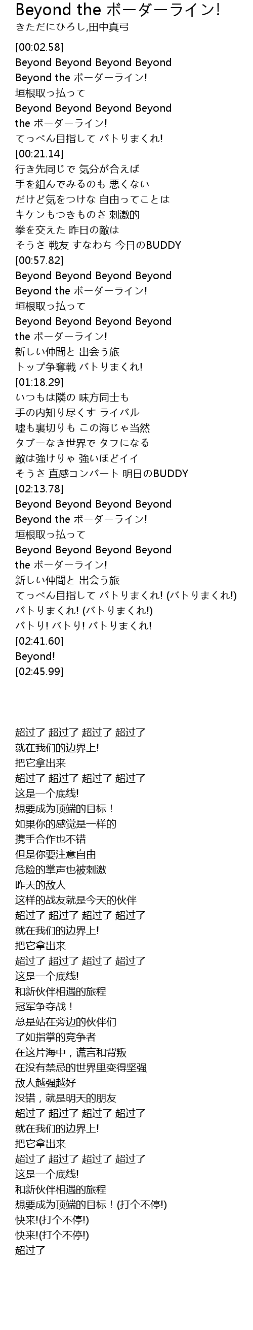 | [02:17.78] | Beyond the ボーダーライン! |
