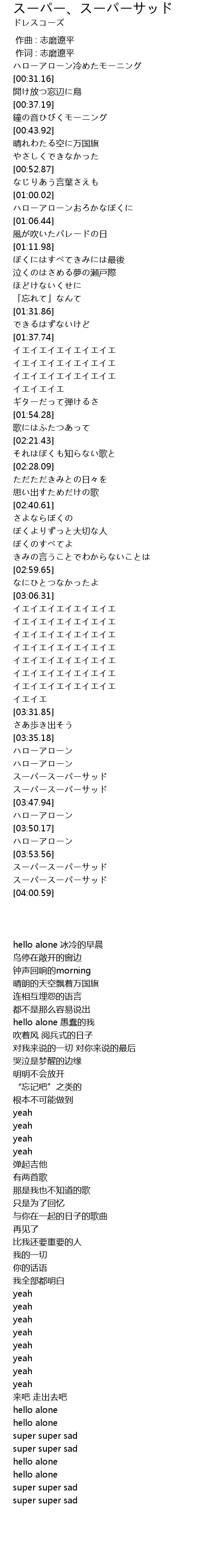 | [00:26.95] | ハローアローン冷めたモーニング |