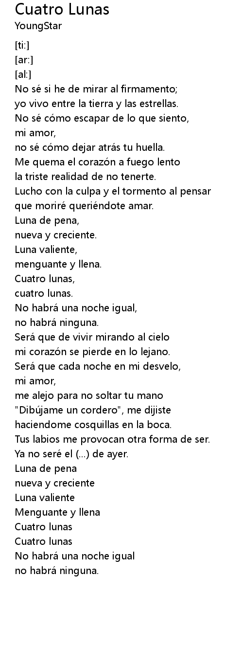 | [02:55.20] | Cuatro lunas |