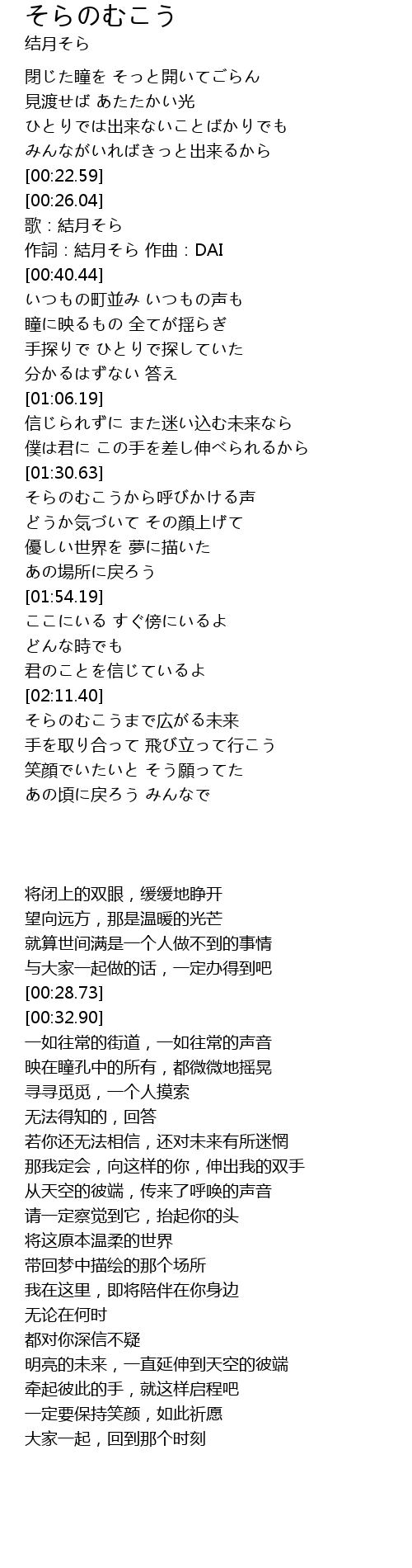 | [02:38.41] | そらのむこうまで広がる未来 |