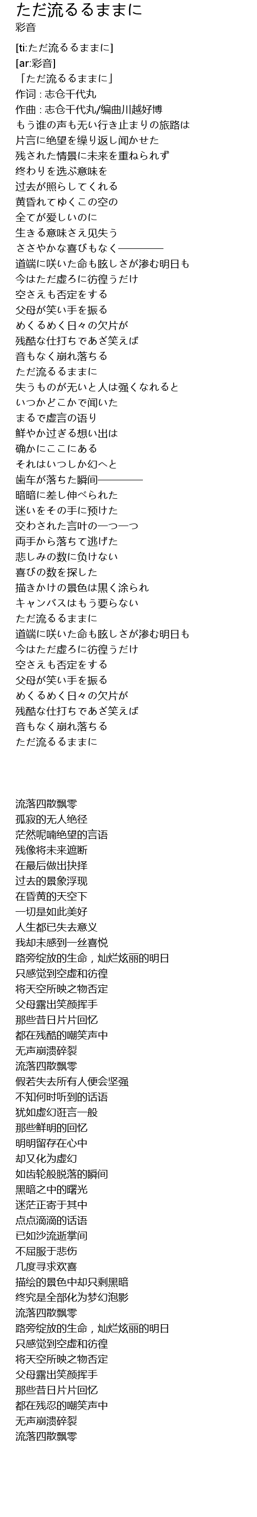 | [ti:ただ流るるままに] | |