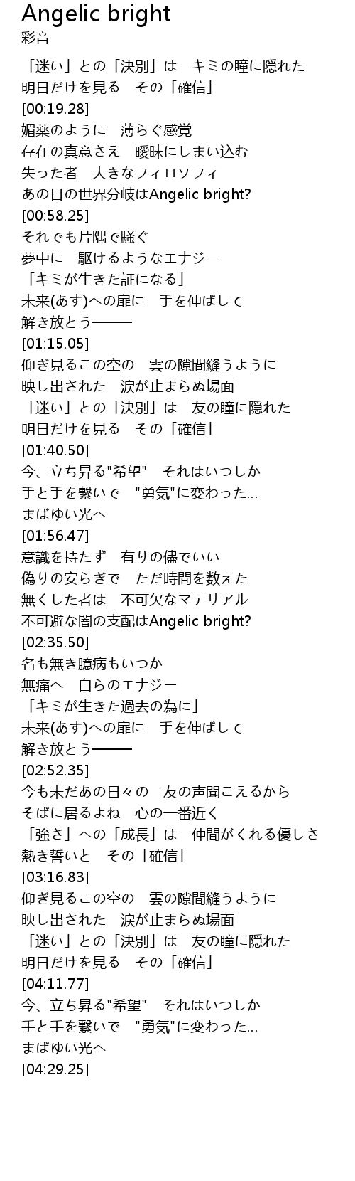 | [02:29.19] | 不可避な闇の支配はAngelic bright? |