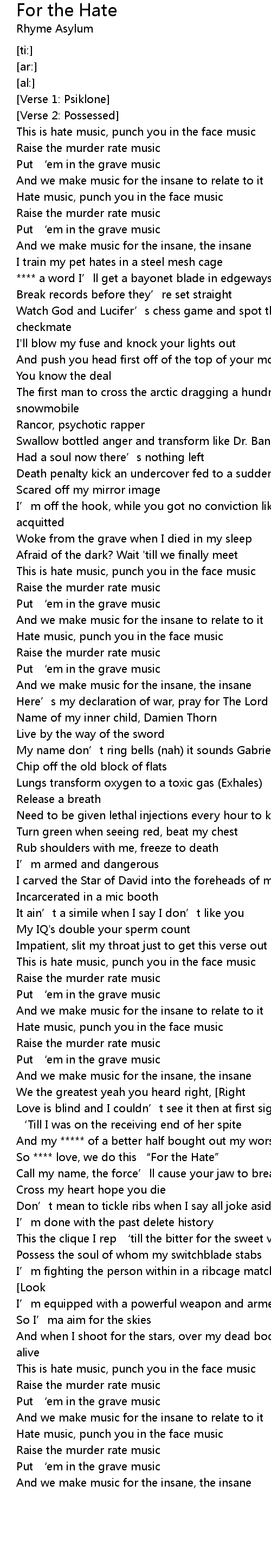 | [02:56.67] | So **** love, we do this “For the Hate” |