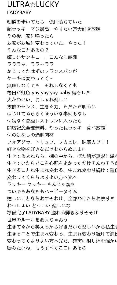 | [00:23.00] | 超ラッキーマジ最高、やりたい方大好き放題 |