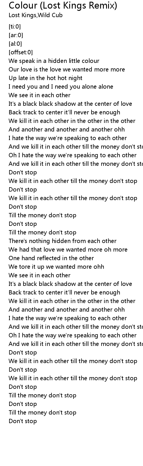 And we kill it in each other till the money don't stop |