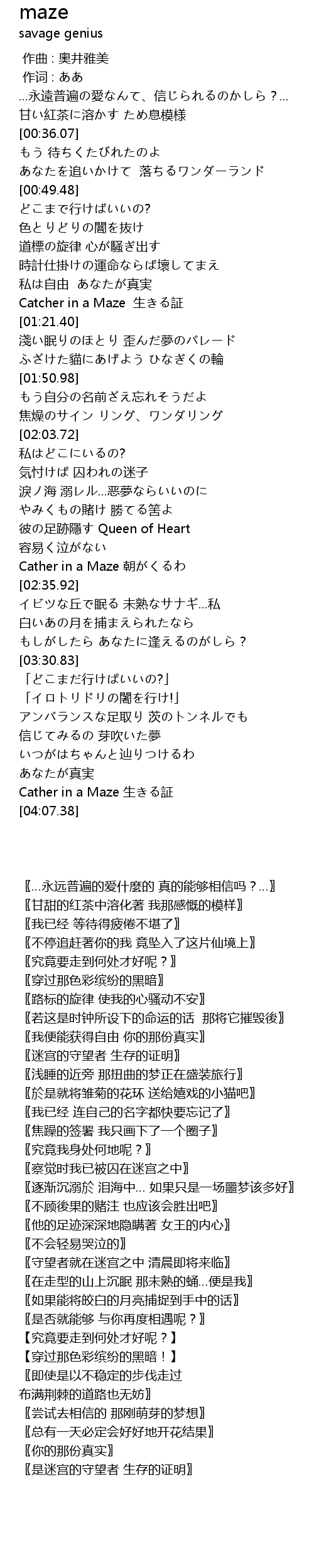 | [04:00.17] | Cather in a Maze shēng zhèng |