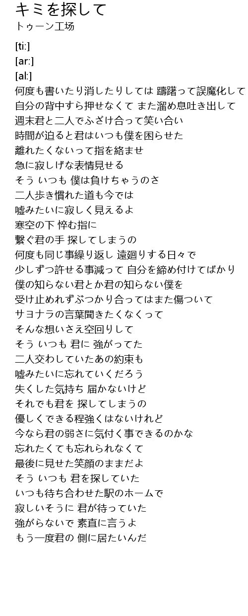 | [01:54.01] | 僕の知らない君とか君の知らない僕を |