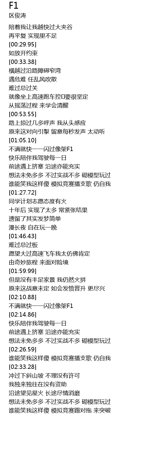 | [02:13.13] | bu man jiu kuai yi yi shan guo xiang jia F1 |
