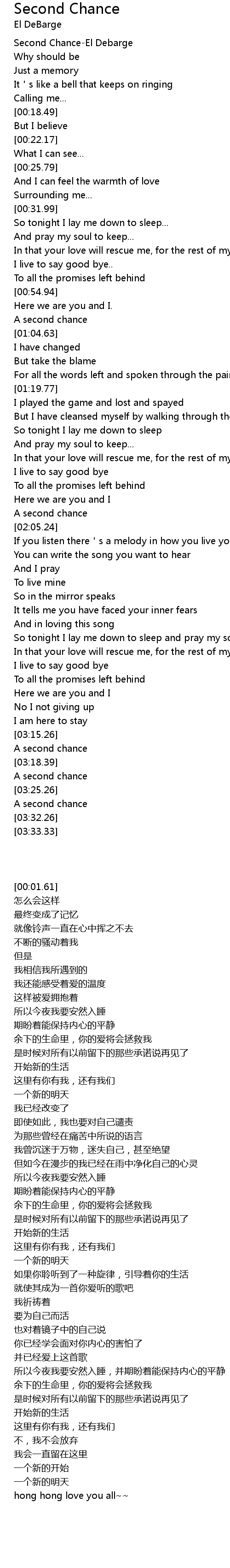 | [00:01.61] | Second Chance-El Debarge |