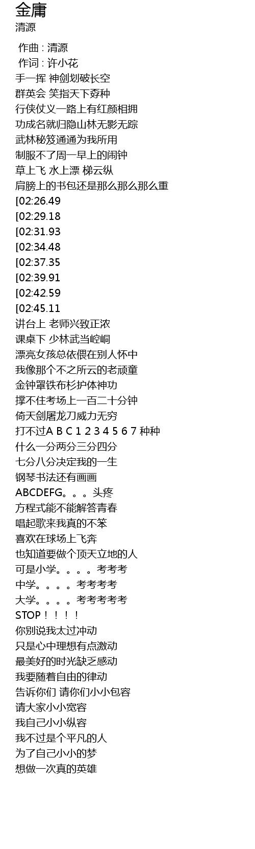 | [02:58.15][02:26.49][01:11.36] | 有位大侠名叫金庸 |