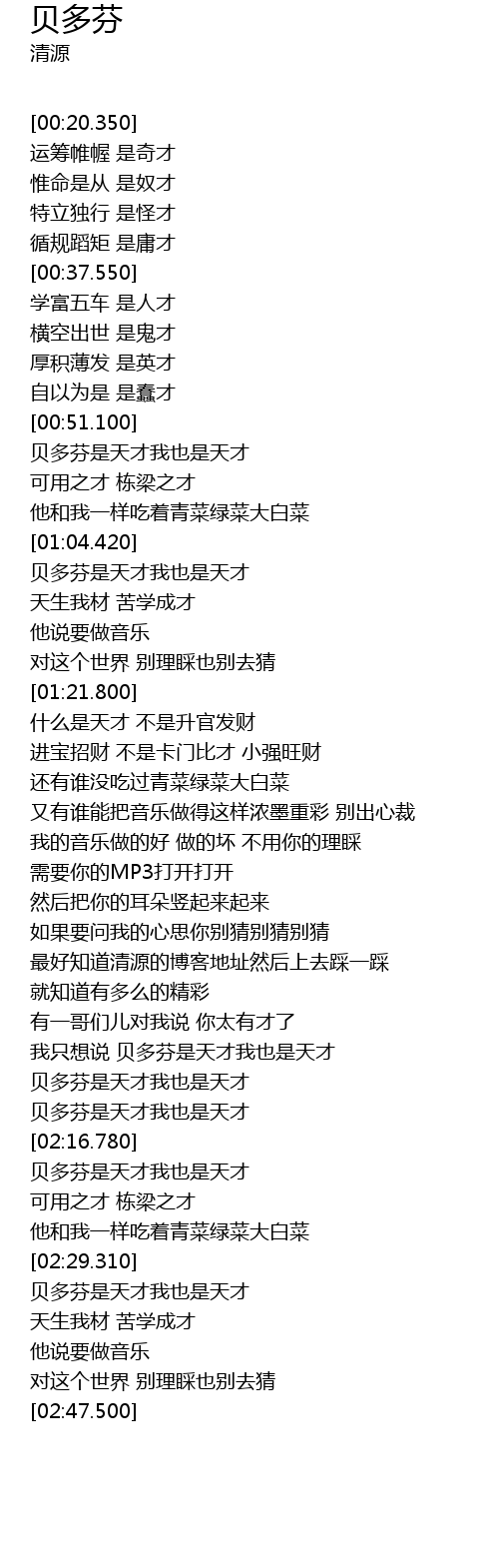 | [02:30.820] | 贝多芬是天才我也是天才 |