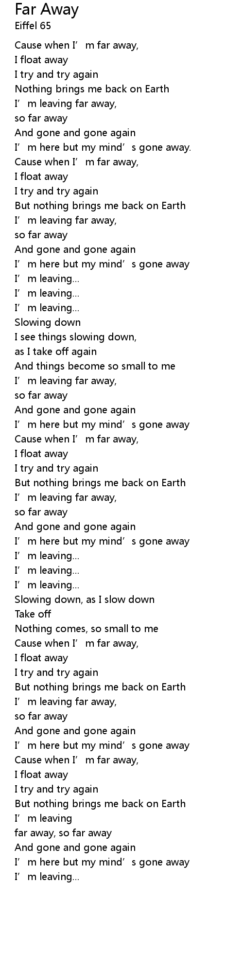 | [00:24.57] | I' m here but my mind' s gone away. |