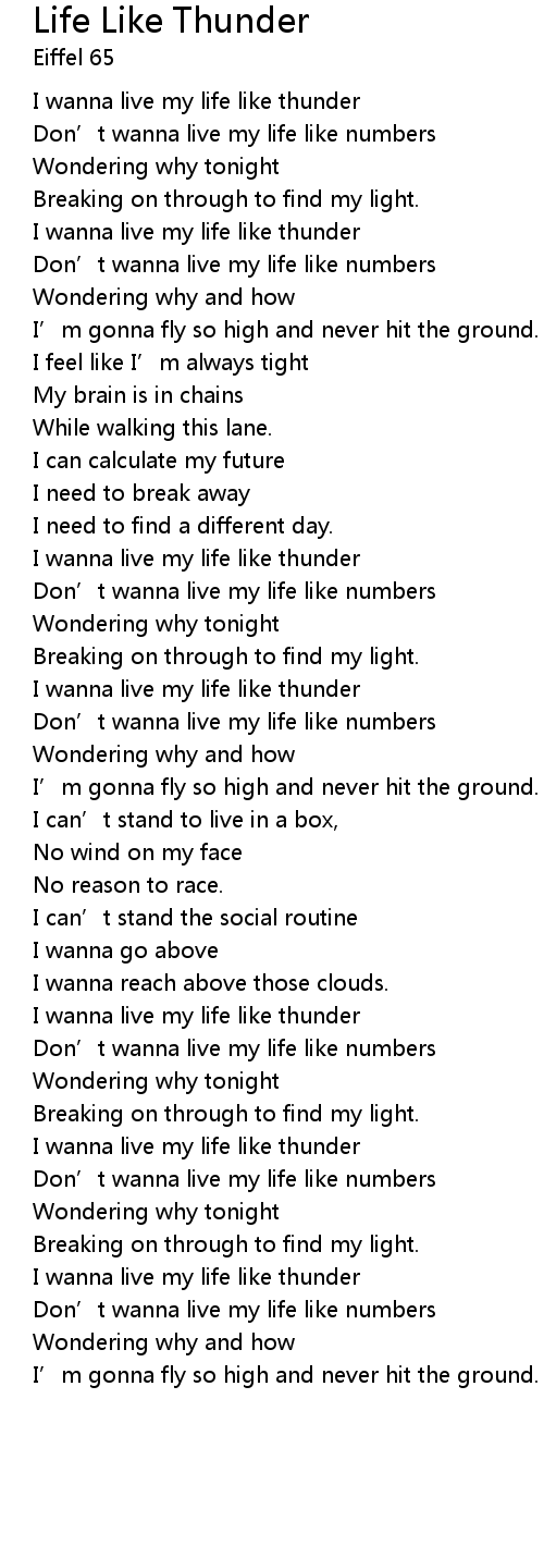 | [00:17.30] | Don’t wanna live my life like numbers |