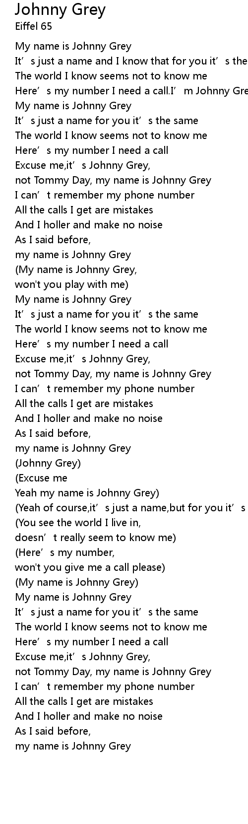 | [00:12.83] | Here' s my number I need a call. I' m Johnny Grey |
