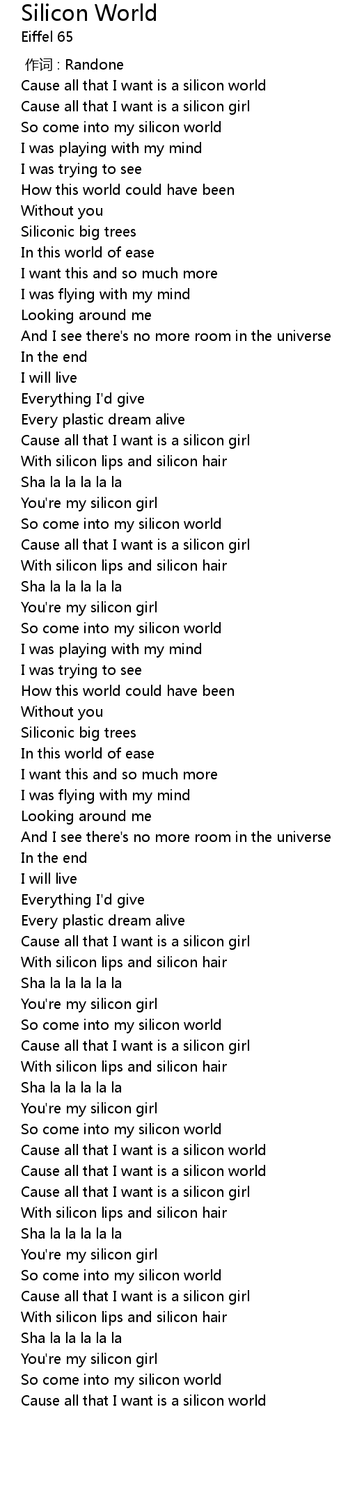 | [00:14.54] | Cause all that I want is a silicon girl |