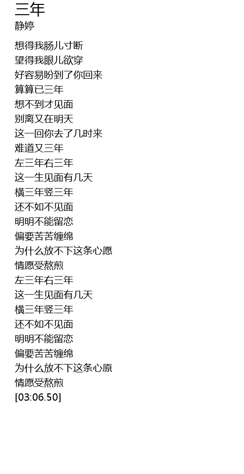 | [03:02.56] | 情愿受熬煎 |