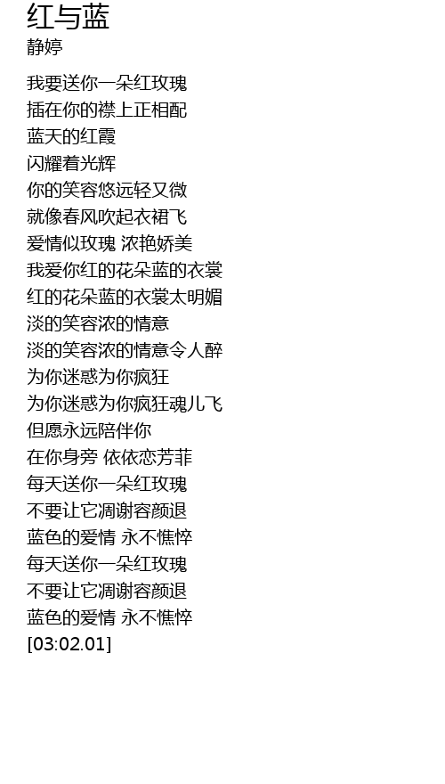 | [02:14.81] | 每天送你一朵红玫瑰 |
