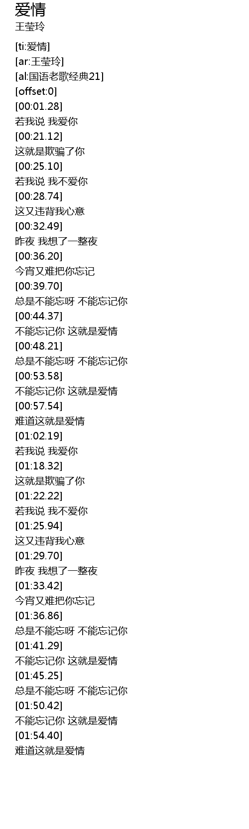 | [01:23.39] | 若我说 我不爱你 |