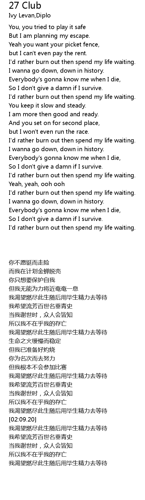 | [02:22.46] | I'd rather burn out then spend my life waiting. |
