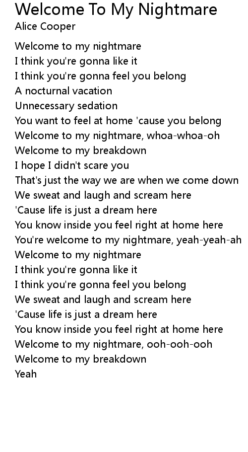 Welcome to my nightmare |