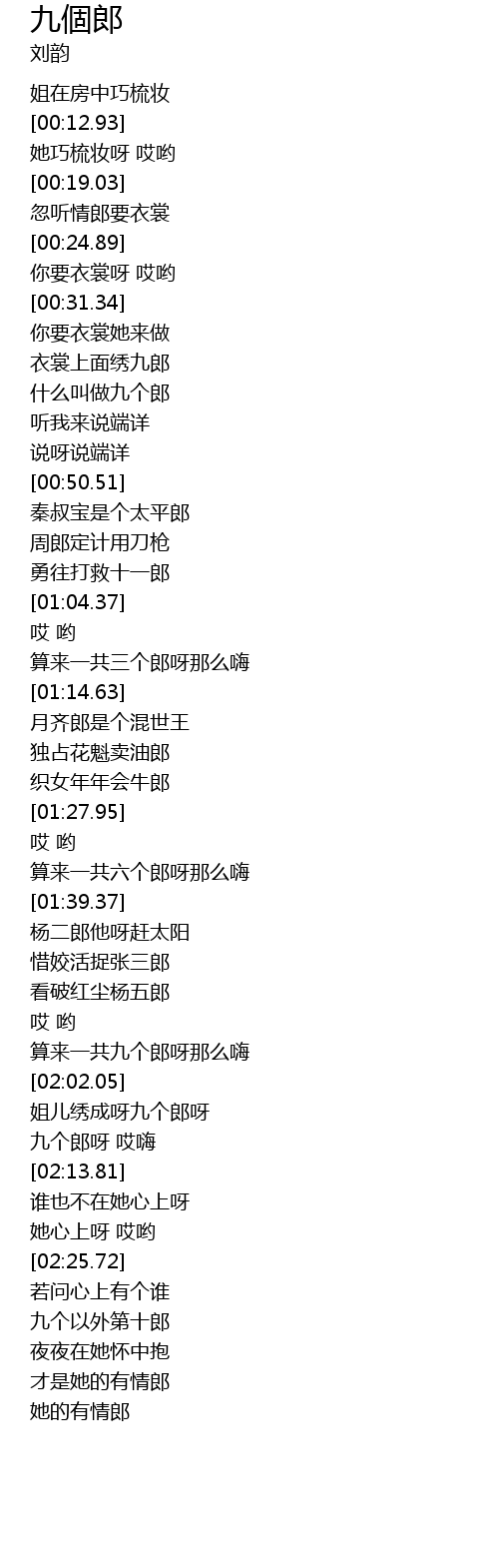 | [02:08.35] | 九个郎呀 哎嗨 |
