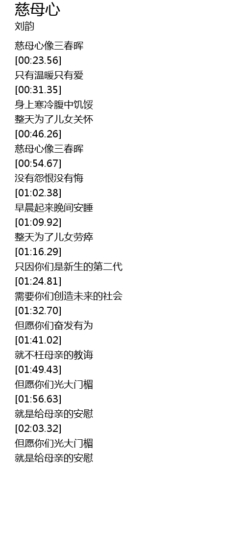| [01:57.29] | 就是给母亲的安慰 |