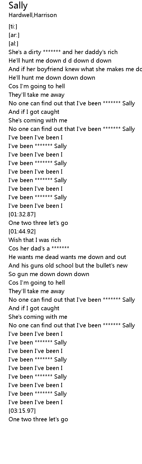 | [00:44.36] | She's a dirty ******* and her daddy's rich |
