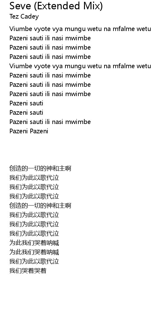 | [02:39.740] | Viumbe vyote vya mungu wetu na mfalme wetu |