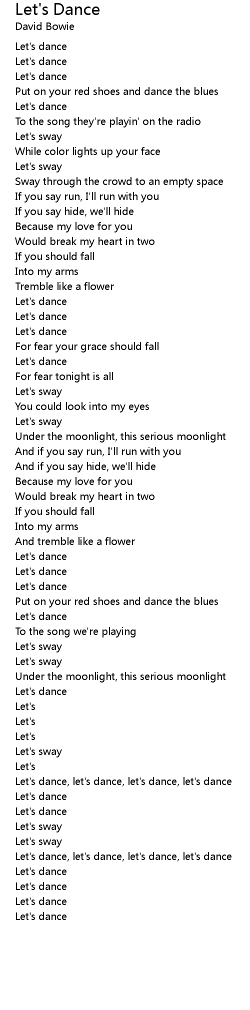 Let's dance, let's dance, let's dance, let's dance |