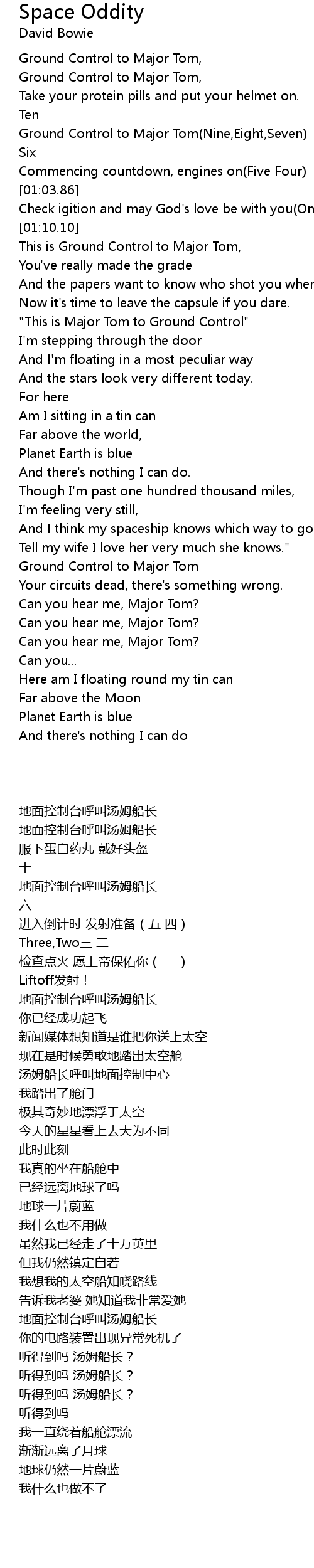 Ground Control to Major Tom(Nine,Eight,Seven) |