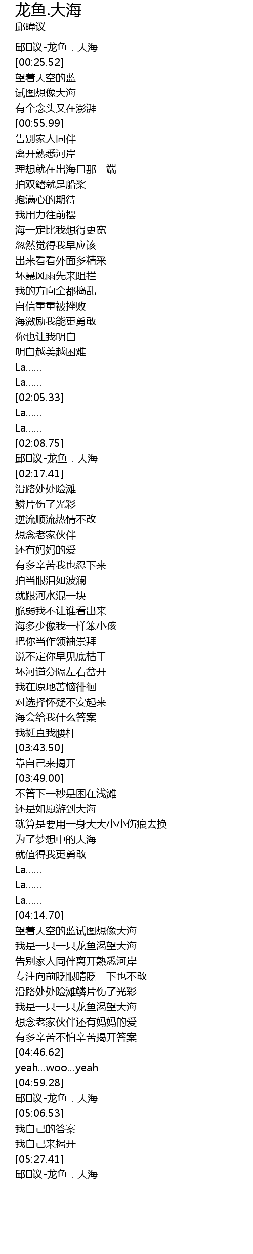 | [04:59.98] | 邱�议-龙鱼.大海 |
