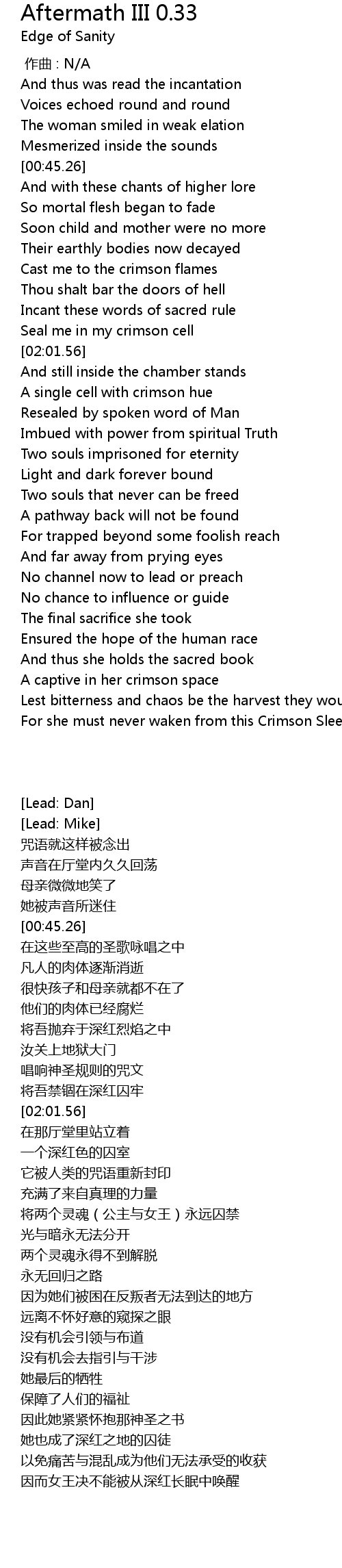 | [04:07.59] | For she must never waken from this Crimson Sleep |